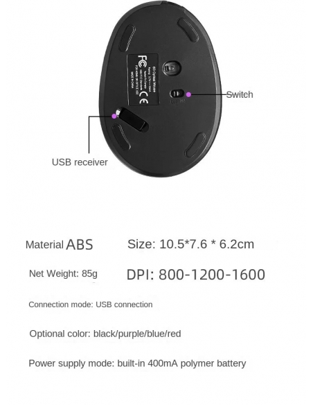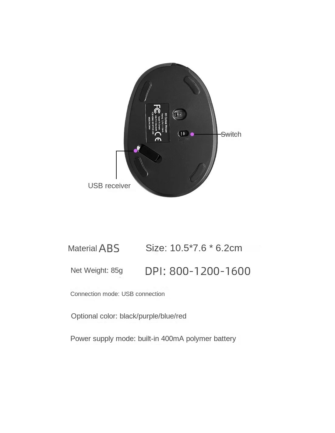 Heayzoki Mouse Verticale Ergonomico Ottico Ricaricabile USB velocità regolabile