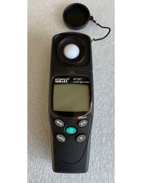 Il luxmetro digitale HT307 consente la misurazione della luminosità utilizzando un sensore a fotodiodo al silicio fino ad una potenza massima di 20kLux.