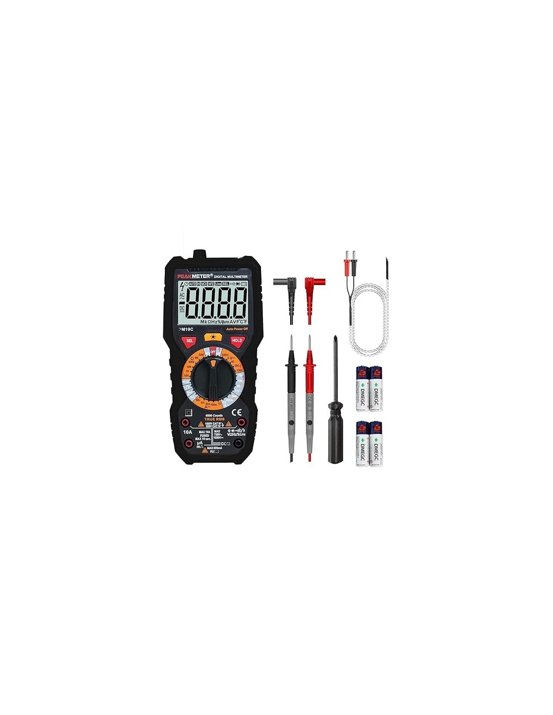 PeakMeter Multimetro digitale 6000 Counts TRMS Ohm Volt Amper Meter AC/DC Tensione Corrente Resistenza Diodo Capacità Frequenza Temperatura di Duty NCV con grande display LCD Retroilluminazione e torcia elettrica
