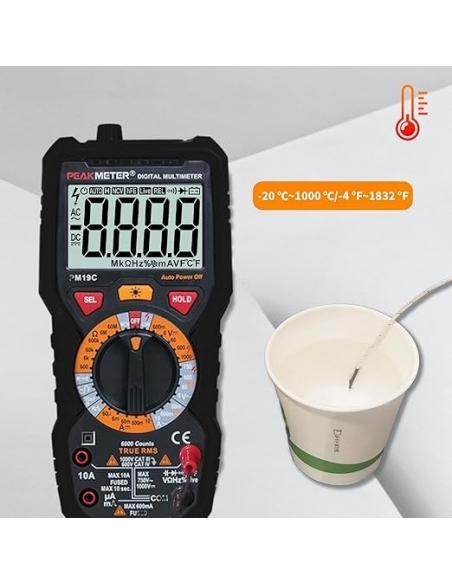 PeakMeter Multimetro digitale 6000 Counts TRMS Ohm Volt Amper