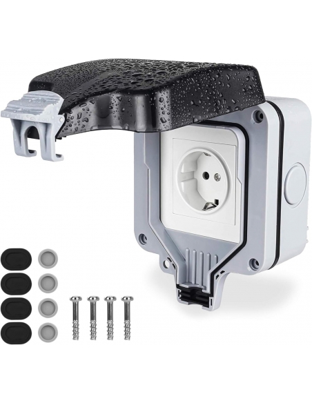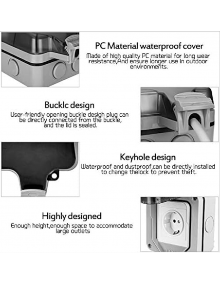 Pluriuso - la doppia presa esterna impermeabile per uso esterno in materiale ABS di alta qualità è resistente e garantisce una grande sicurezza per uso esterno. presa a muro per l'officina, cantina, lavanderia, bagno, garage, giardino e le applicazioni commerciali. perfetto per tutti i dispositivi esterni