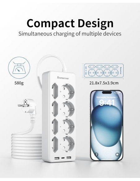 Sameriver ZYC52 Ciabatta Elettrica Multipresa USB 8 prese di Corrente e 3 USB.