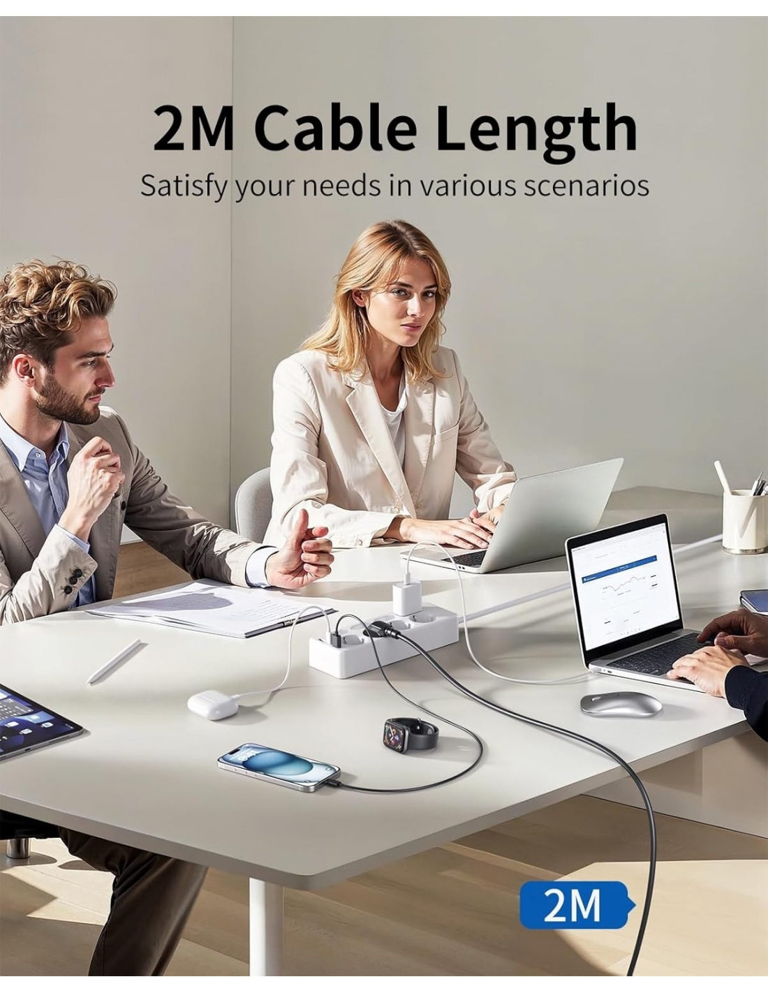 Ciabatta Elettrica Multipresa USB, 8 prese di Corrente e 3 USB, Striscia di Alimentazione Protetta da Sovratensione, presa di da 2 M con Interruttore per Scrivania, Ufficio, Casa, Bianca F(Schuko)