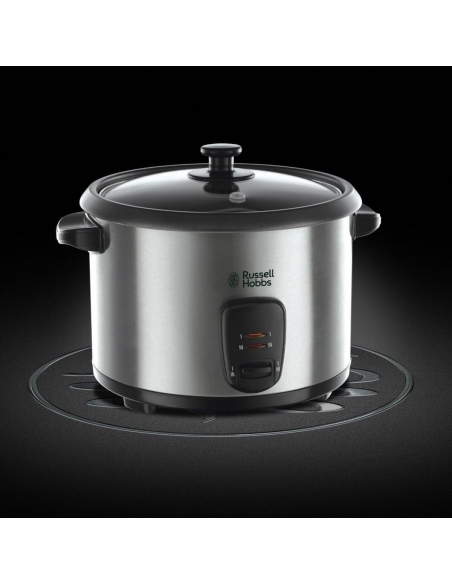 Russell Hobbs Cuociriso - 1,8l - Inserto per cottura a Vapore; Pentola antiaderente Rimovibile; Cucchiaio per riso e misurino; Acciaio Inox; coperchio in vetro, pentola a cottura lenta,