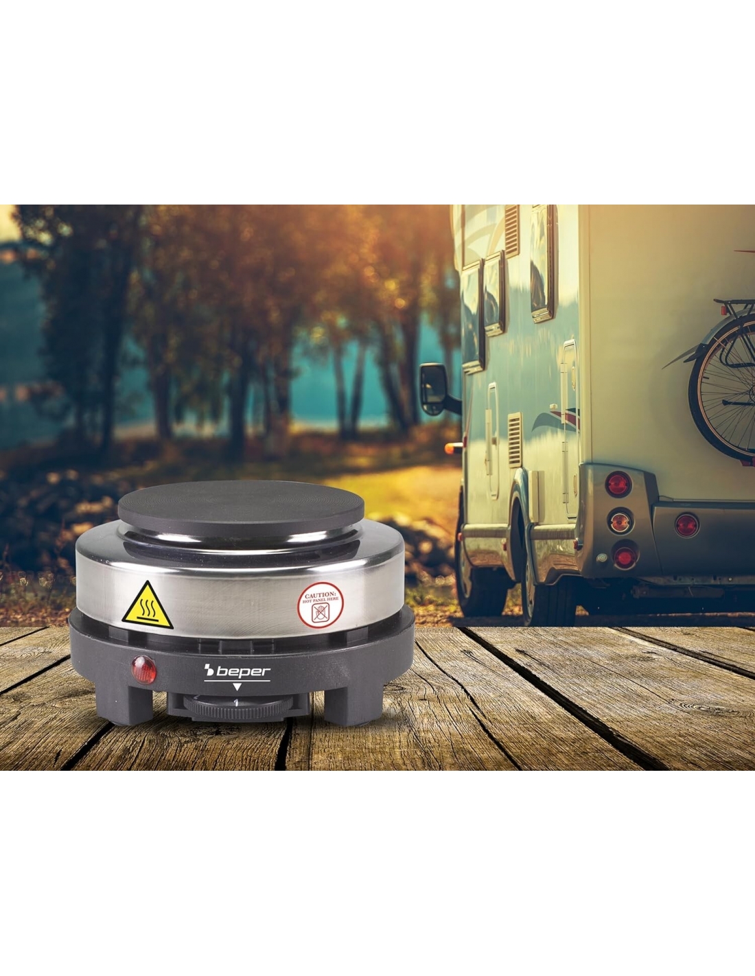 BEPER P101PIA003 Fornello Elettrico Piccolo in Ghisa/Acciaio Inossidabile, 5 Livelli di Cottura, Fornelletto Elettrico Portatile, Fornello da Campeggio con Piastra da 10 cm, 500W
