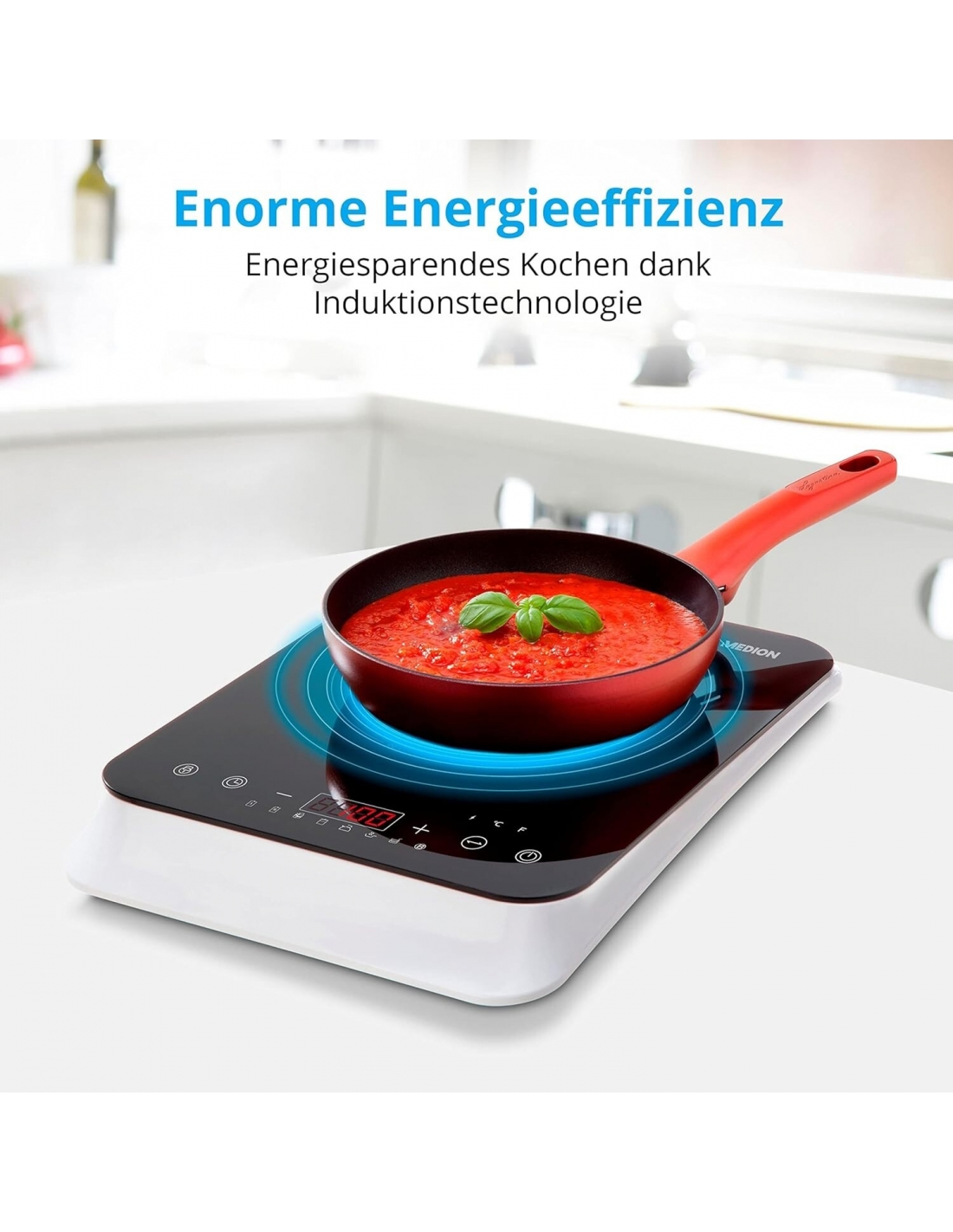 - Piano cottura a induzione MEDION (MD 18490), potenza a induzione 2000 watt, 8 programmi automatici, funzioni di sicurezza, nero