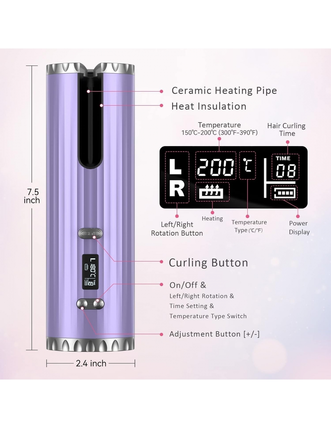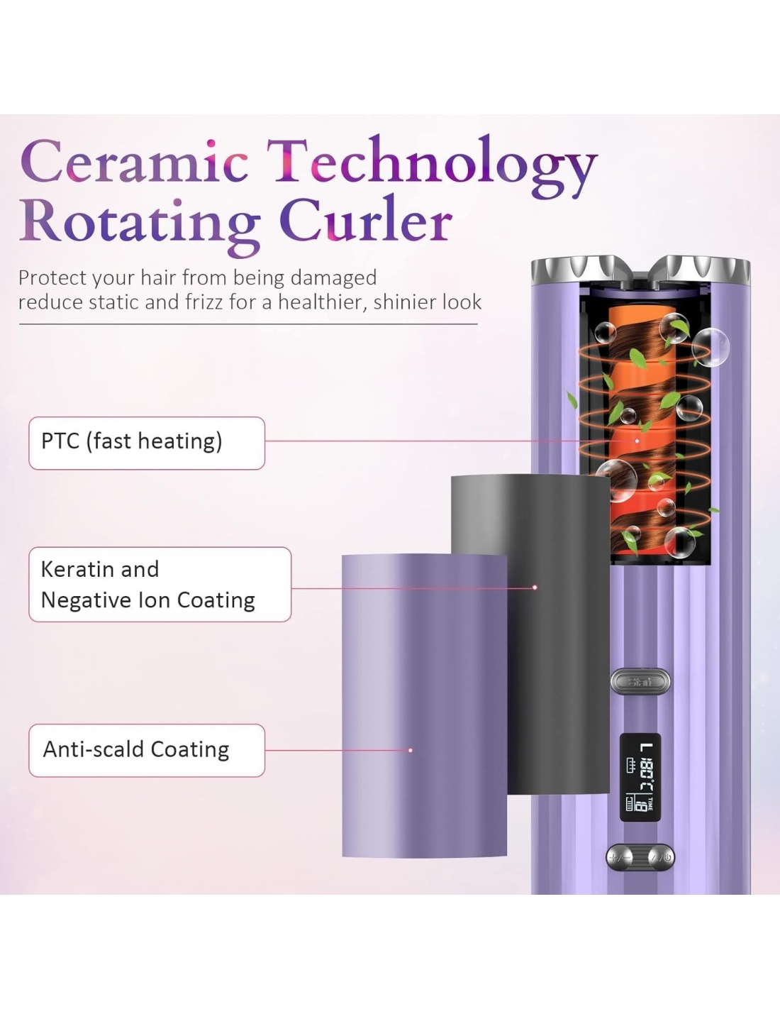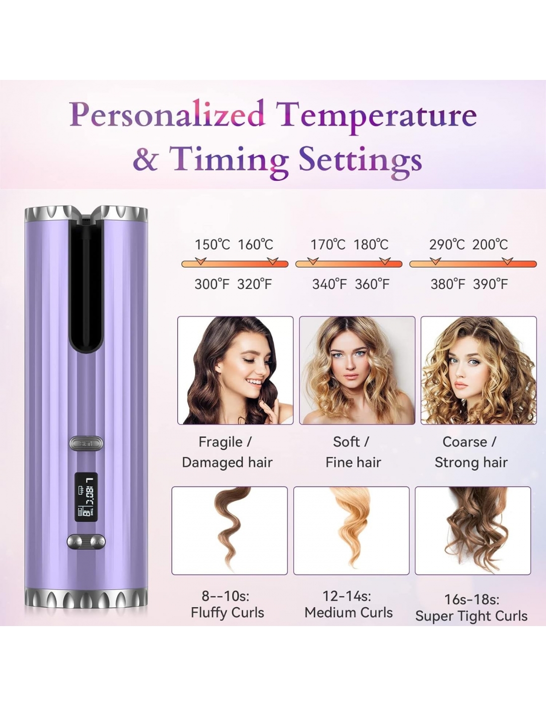 Ferro Arricciacapelli Automatico Senza Fili con 6 Temperature e Temporizzazione
