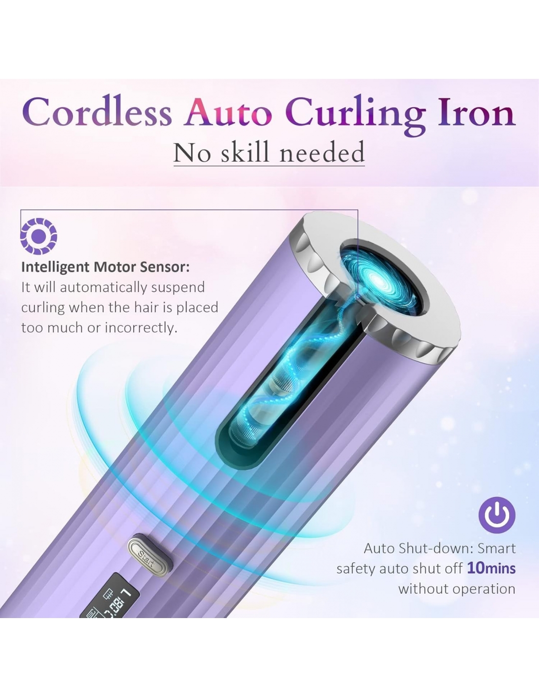 Ferro Arricciacapelli Automatico Senza Fili con 6 Temperature e Temporizzazione, Arriccia Capelli Donna Ricaricabile USB con Batteria da 5000mAh, Induzione Intelligente Anti-Groviglio
