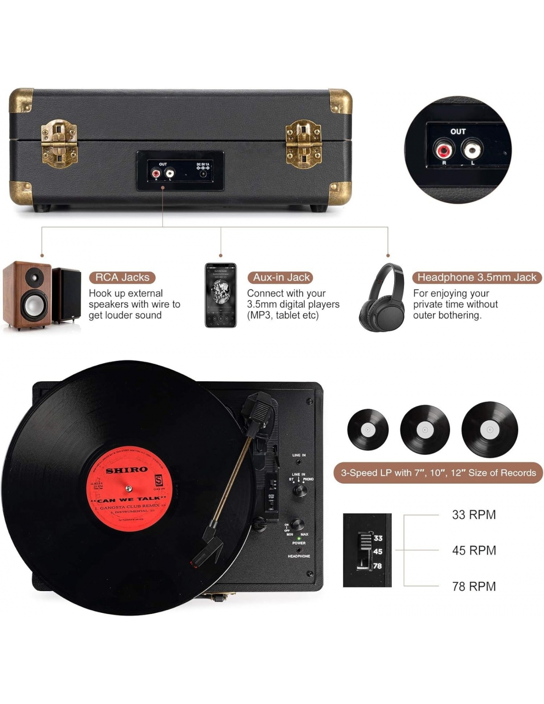 - Quattro possibilità di collegamento disponibili: audio digitale in streaming tramite il giradischi con altoparlanti Bluetooth integrati. Collegare altoparlanti esterni tramite l'uscita RCA o l'ingresso AUX per dispositivi non Bluetooth come MP3. Puoi usare le cuffie per ascoltare in privato. Ascolta la giornata con la musica.