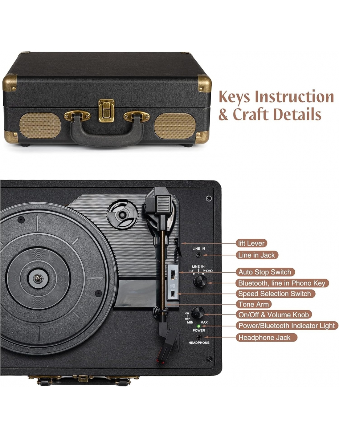 - Suitcase Retrolife personalizzabile con lettore registrato: una combinazione soddisfacente di elementi moderni e vintage. Aspetto classico in pelle PU nera con viti e reti in metallo bronzo retrò, puoi portarlo ovunque con la sua solida impugnatura. Preparati a creare i tuoi ricordi musicali.