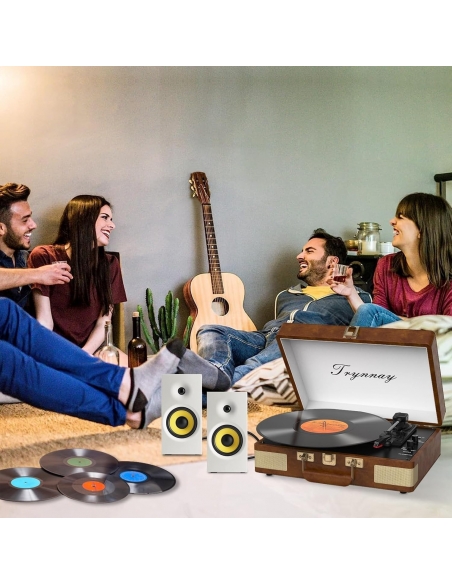 Trynnay Giradischi a 3 marce, lettore portatile in vinile con altoparlanti