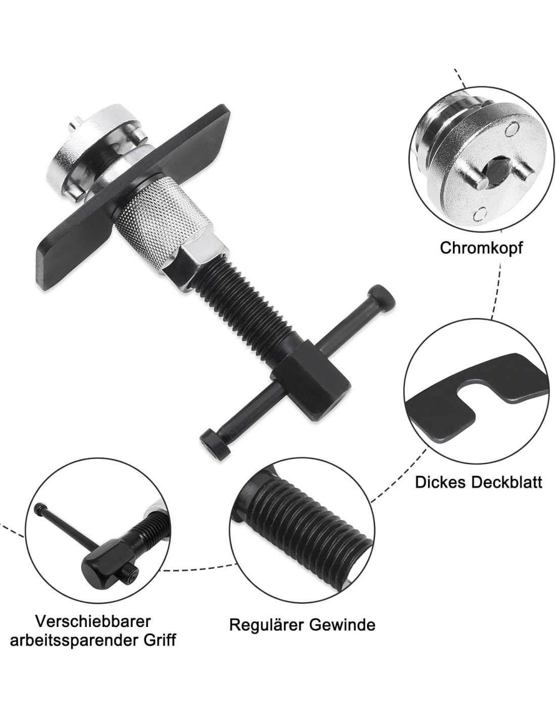 - Ripristino universale per pistoni del freno: il mandrino girevole extra lungo ha un attacco universale quadrato esterno da 10,0 mm. Un dado a pressione per mandrino girevole, diametro perno: circa 6 mm, spazi tra perni: 16 mm e 28 mm
