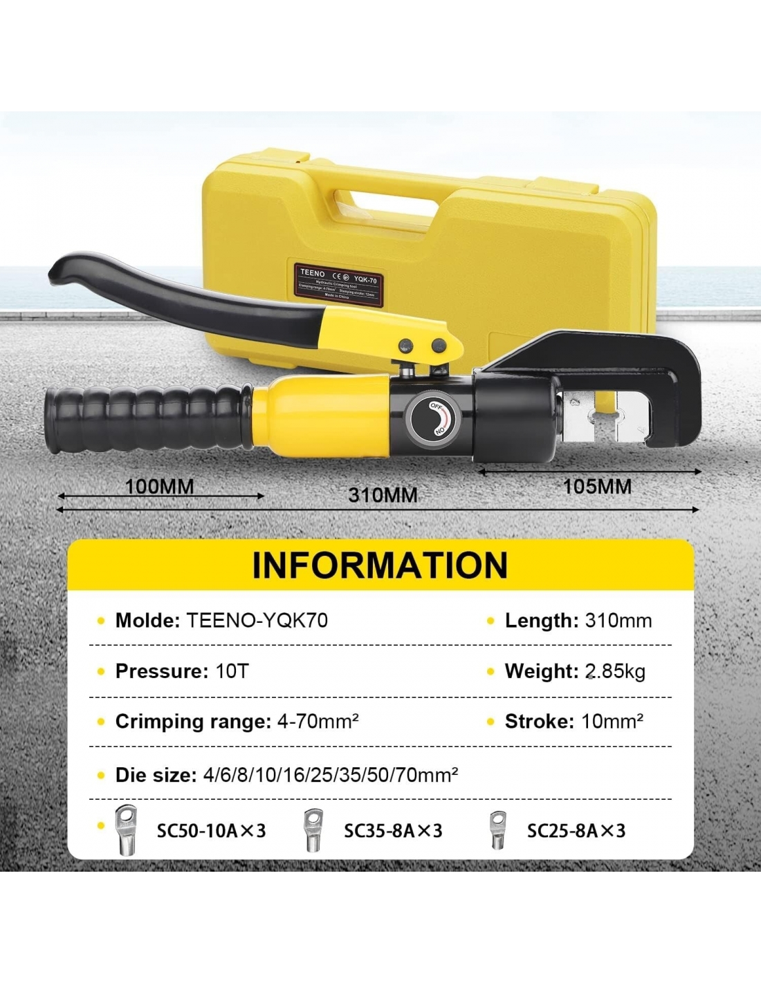 Pinza per morsetti+ 60 AWG 10-0, 6/10/16/25/35/50 mm², pinza per elettricisti con impugnatura antiscivolo (Pinza Idraulica Crimpare)