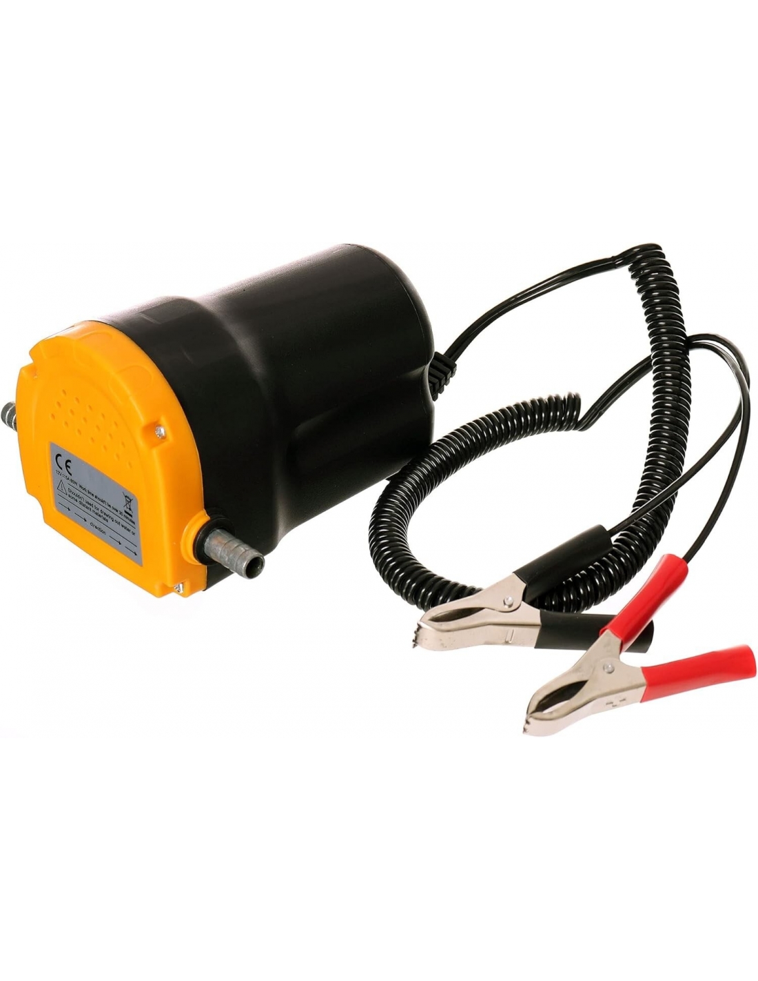 Pompa per auto, progettata per pompare liquidi come gasolio, olio motore, acqua e oli fluidi da contenitori e cisterne, ecc. Alimentata da una batteria per auto da 12 V, collegando i morsetti ad essa.