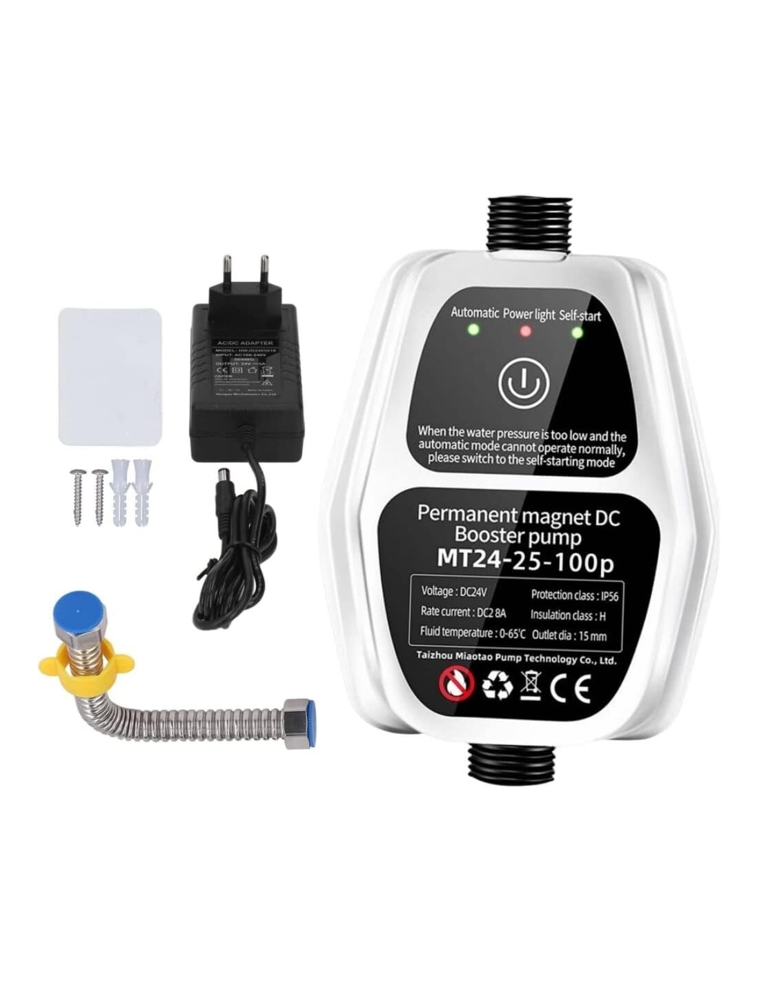 Pompa booster automatico pressione acqua 100PA regolatore automatico DC 24V 25l/min per rubinetto doccia casa cucina a parete