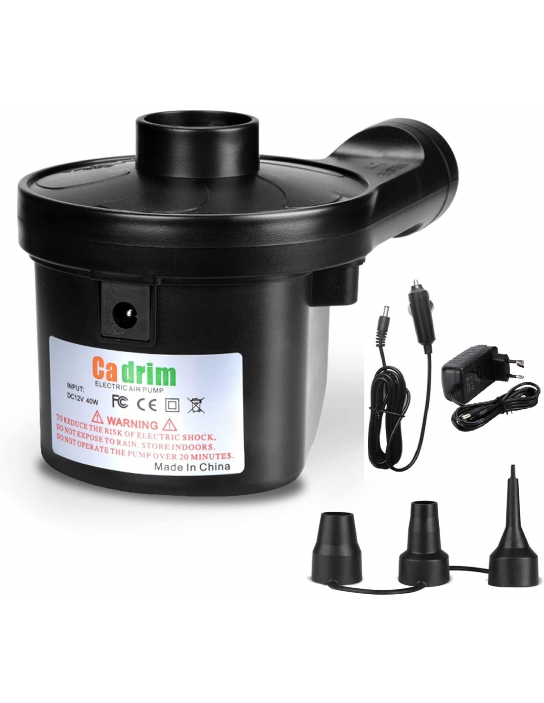Cadrim Pompa di Aria Elettrica Gonfiabile Pompe Elettriche,Sgonfiaggio Automatica e Rapida Pompaggio con 3 Allegati,Per Materassi/ Giocattoli gonfiabili/Canotti / Cuscino /Outdoor (Auto e Casa)