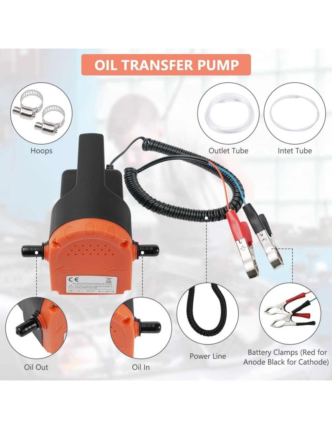 Flintronic 80W 12V Pompa Estrattore per Aspirazione Olio Motore e Gasolio, Pompa Trasferimento Olio Scavengata Car Aspirazione Carburante Elettrico per Auto/Motocicli