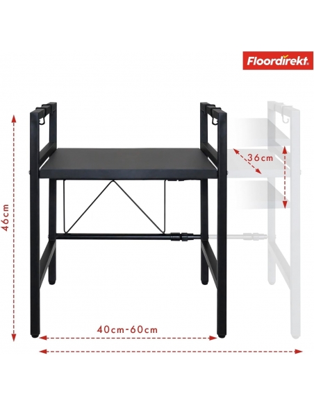Floordirekt Scaffale per microonde – Mensola regolabile a 2 livelli, organizer da cucina regolabile con 3 ganci, flessibile estraibile, scaffale da cucina, scaffale per spezie