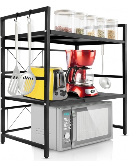 - Design accattivante e senza tempo: con il suo aspetto moderno in nero senza tempo, il supporto per microonde si adatta perfettamente a qualsiasi arredamento. Che il tuo arredamento sia moderno, classico o minimalista, questo scaffale sarà un'aggiunta esteticamente gradevole a qualsiasi stanza!