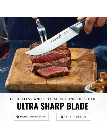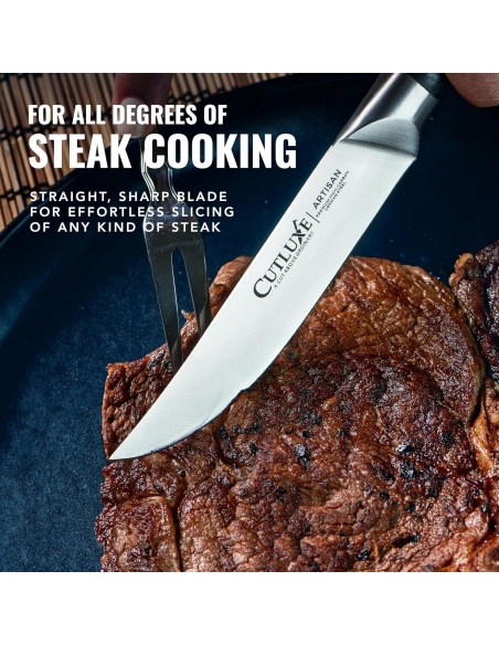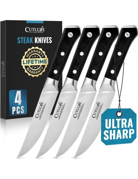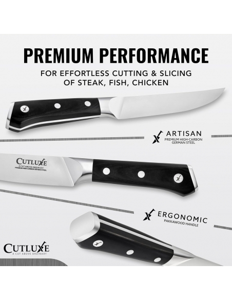 Set di 4 coltelli da bistecca Cutluxe, set di coltelli da bistecca a lama dritta - Acciaio tedesco forgiato ad alto tenore di carbonio, codolo intero, design ergonomico dell'impugnatura - Serie Artisan
