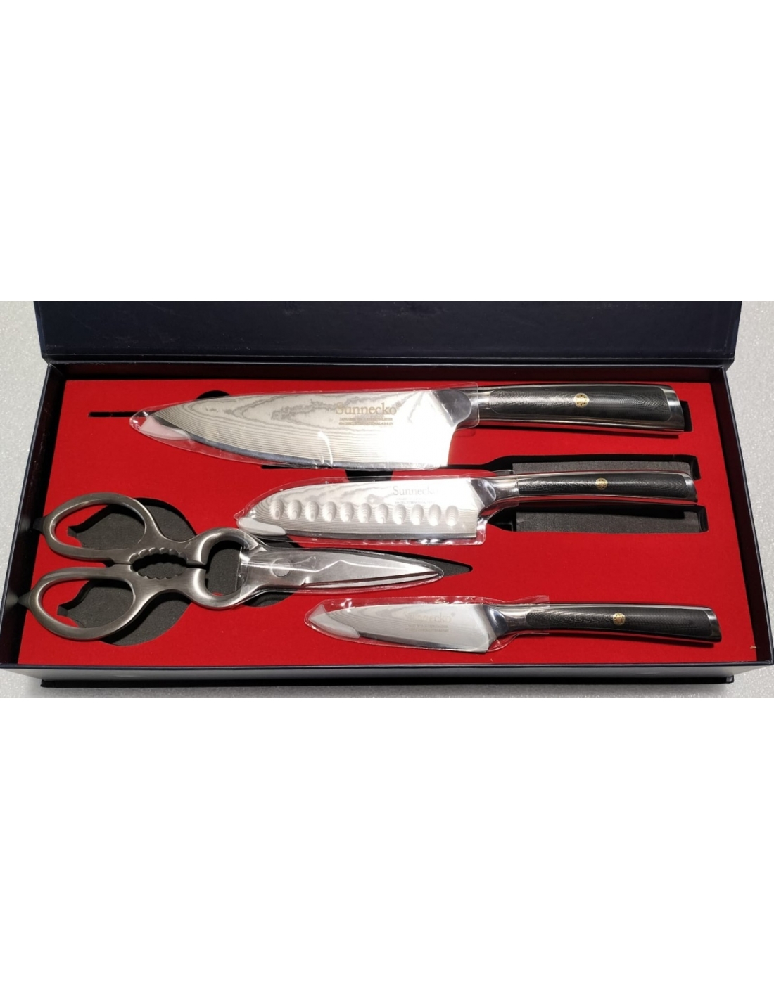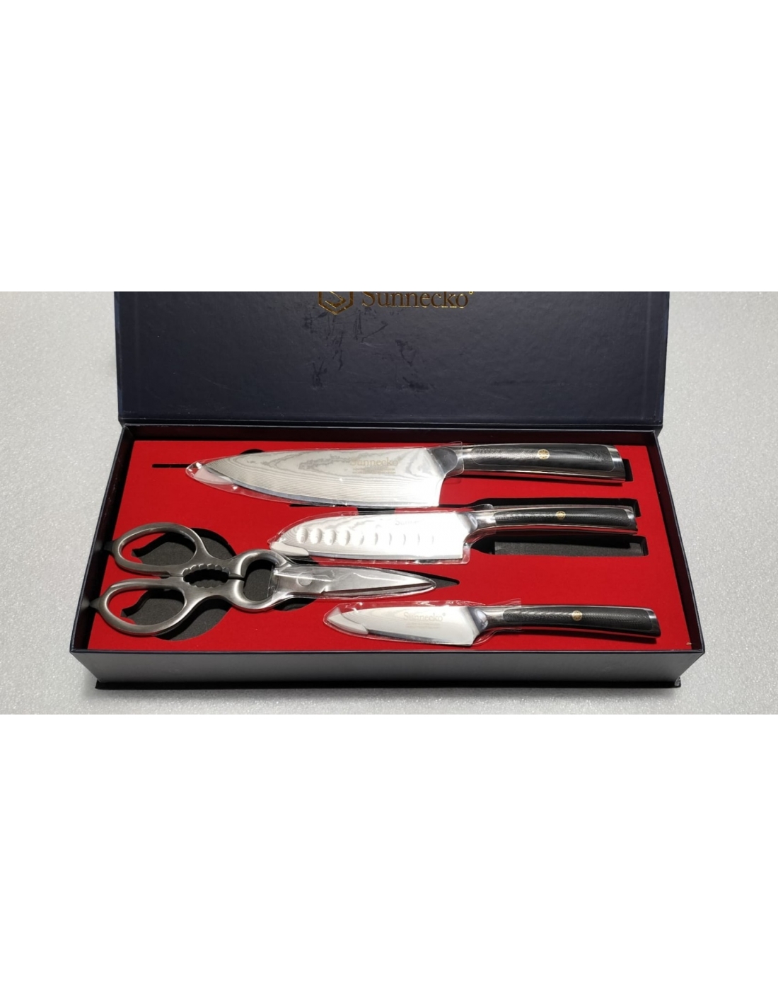 Sunnecko Set di 3 Coltelli e 1 Forbice da Cucina Acciaio Inox Resistenti
