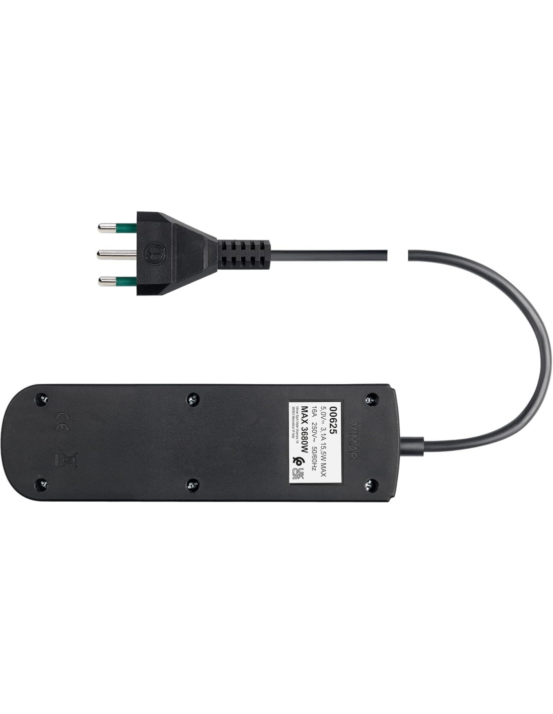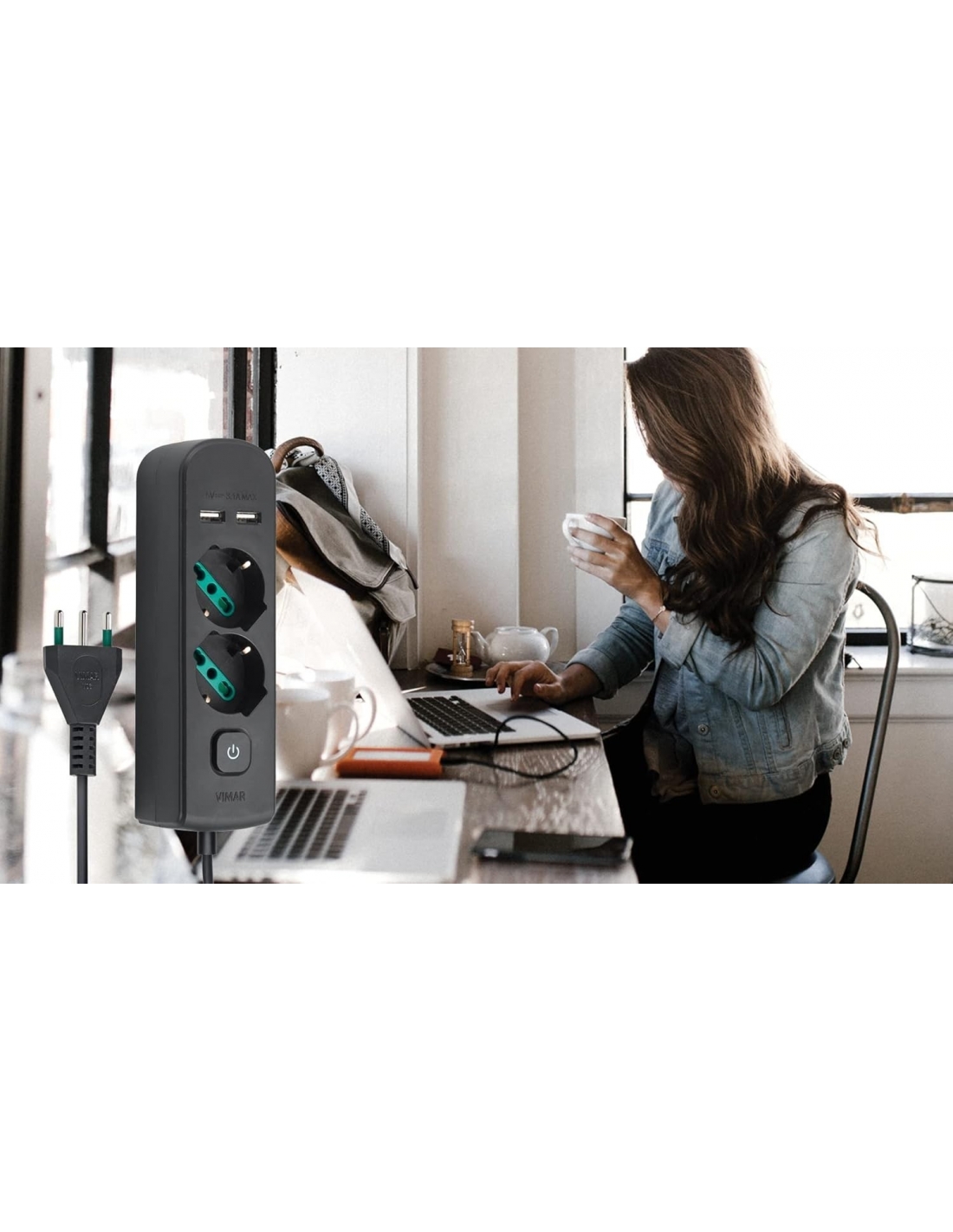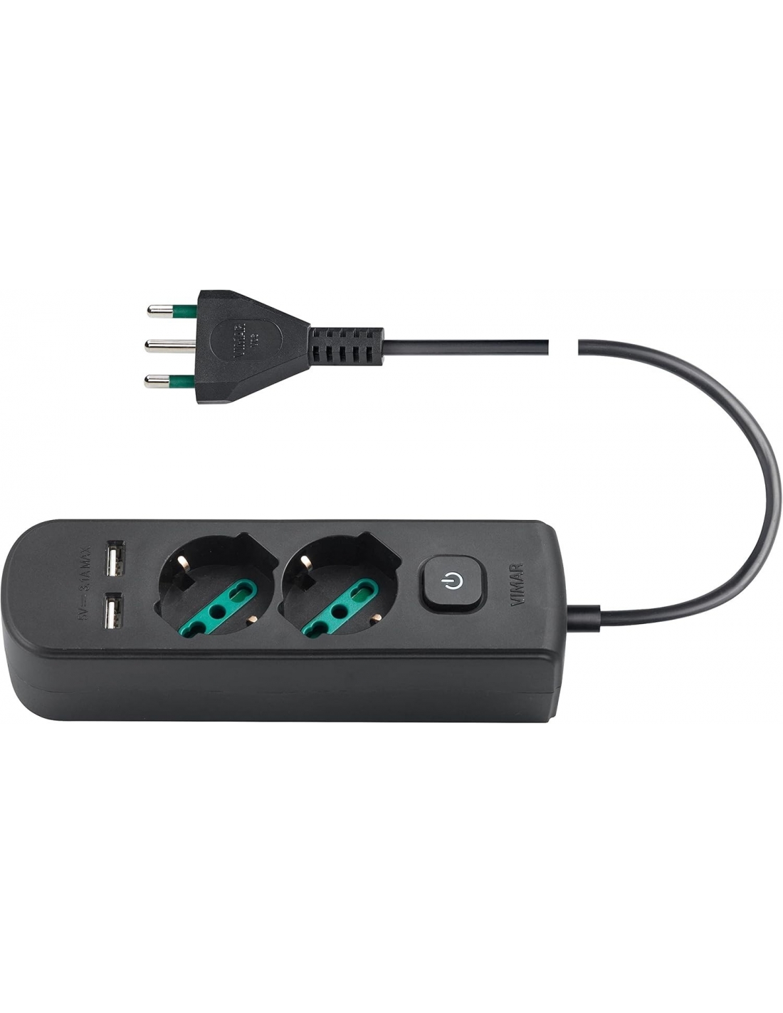 Vimar Presa multipla con interruttore e cavo da 1,5 m, 2 universale standard italiano, 2 uscite SICURY USB A, spina nero