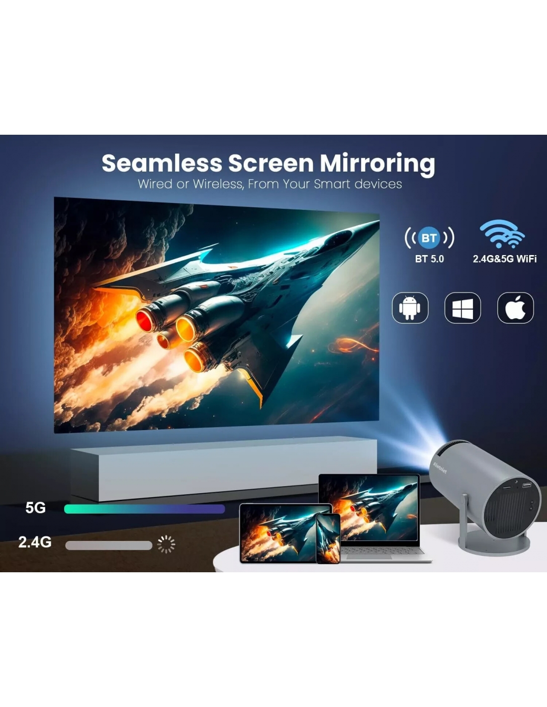 Alwtniet Mini Proiettore Portatile Auto Keystone 5G WiFi BT5.0 Supporto 4K 1080P