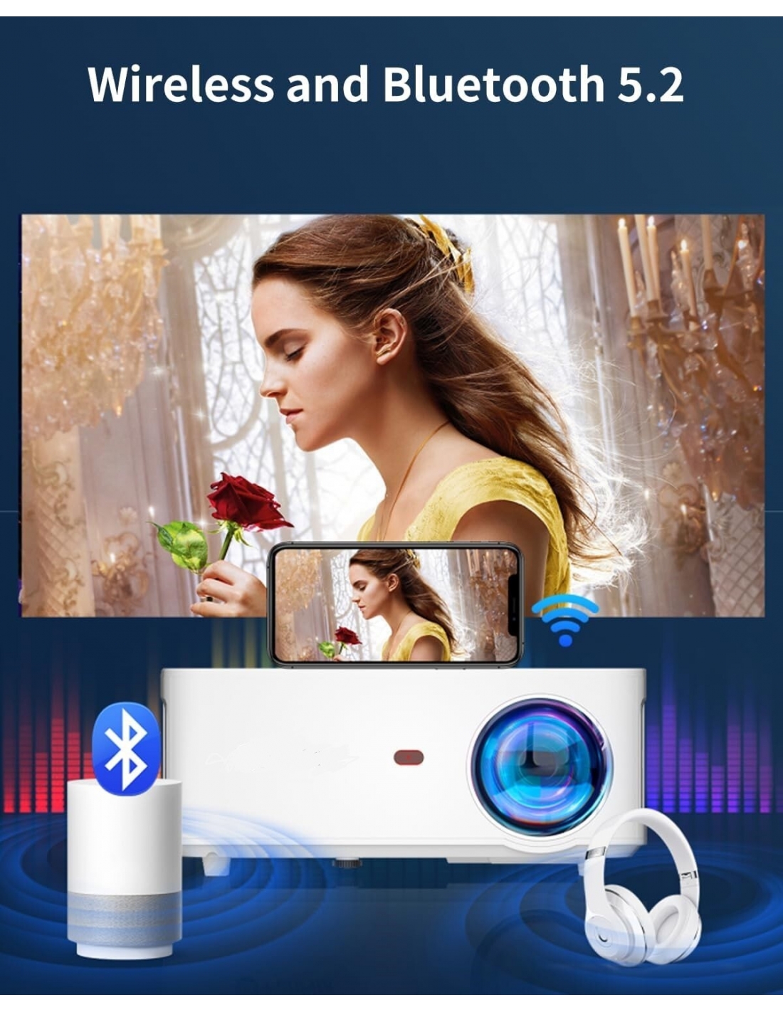 - 【Funzione BT 5.0 e WiFi 2.4G/5G stabile】Il proiettore WiFi Bluetooth FunFlix RD-828E è dotato di due altoparlanti stereo, che offrono una qualità del suono chiara e meravigliosa, ampia compatibilità e possono essere collegati a vari altoparlanti e cuffie Bluetooth. Allo stesso tempo, il modulo WiFi 5G integrato, la velocità wireless WiFi dual-band 2.4G/5G è più veloce, la copertura è più ampia e la trasmissione è più fluida. Sincronizza gli schermi iOS/Android senza adattatori e dongle aggiuntivi.