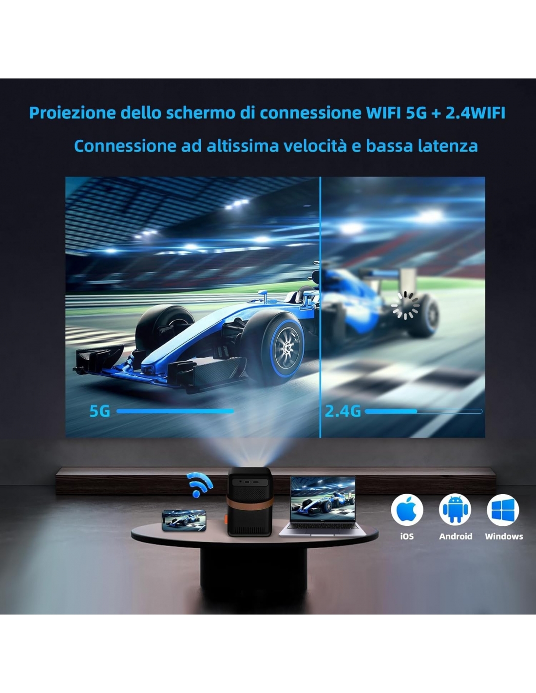 FunFlix G1 Mini Proiettore Portatile,18000 Lumen 5G WiFi Bluetooth