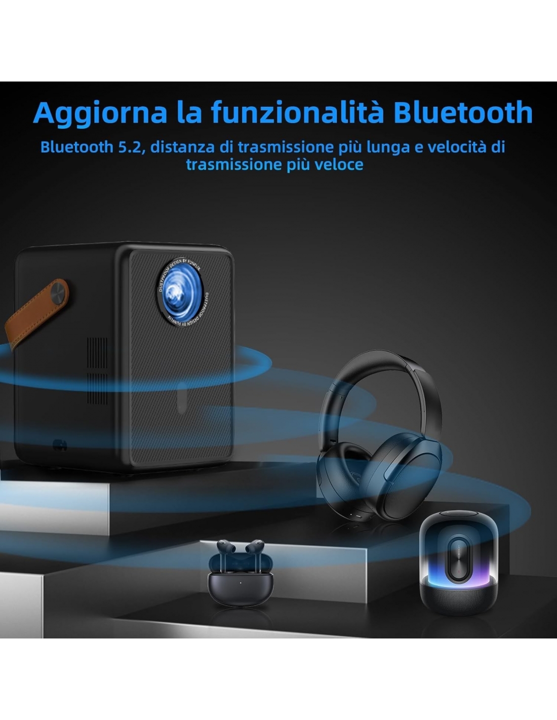 FunFlix G1 Mini Proiettore Portatile,18000 Lumen 5G WiFi Bluetooth Supporto 1080P Full HD Videoproiettore, FunFlix G1 Zoom Intelligente Proiettore Home Cinema, Smartphone/TV Stick/HDMI/USB/PS5