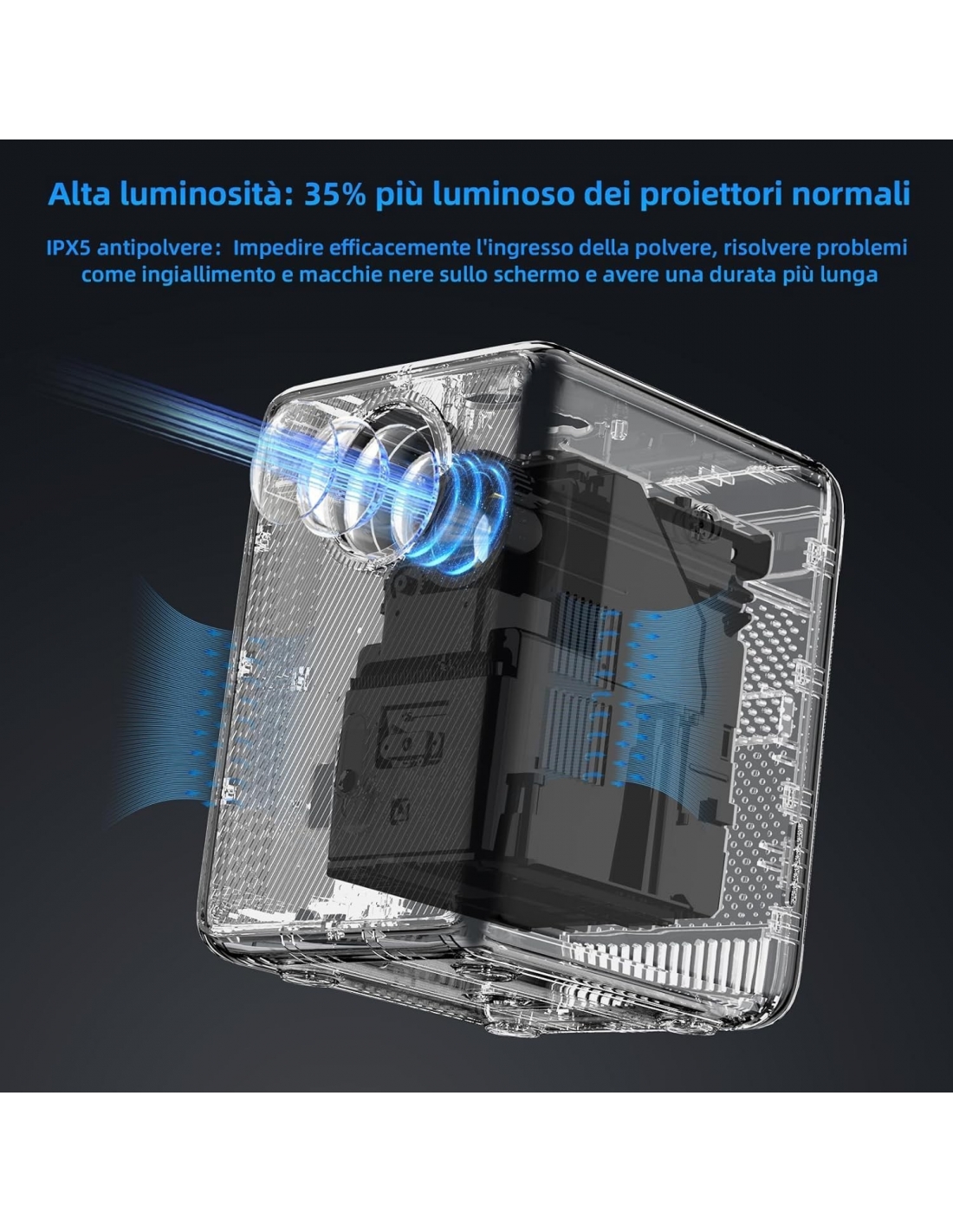 - 🔔【IP5X a prova di polvere e Mini Portatile】Questo mini proiettore portatile G1 adotta la più recente tecnologia IP5X macchina integrata a prova di polvere della luce chiusa. Impedire efficacemente l'ingresso della polvere. La qualità e la luminosità uniformi dell'immagine aumentano del 20%, estendendo anche la durata a 100000 ore. Il proiettore ha un volume di soli 12,6 * 14,6 * 18,3 centimetri, pesa 1,3 kg e viene fornito con un design manico in pelle, che lo rende molto conveniente.