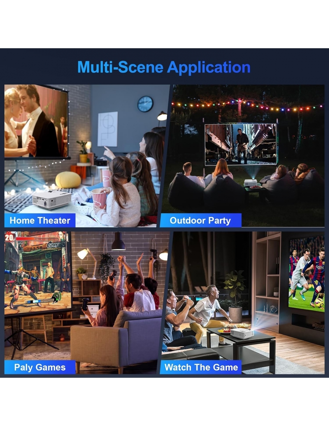 - ?Porte multiple e compatibilità multimediale? - Questo mini proiettore è dotato di HDMI/USB/VGA/AV/scheda Micro SD/uscita audio da 3,5 mm, il che lo rende una soluzione perfetta per più sorgenti di ingresso. Compatibile con smartphone/tablet/PC/laptop/cuffie/altoparlanti esterni/chiavette USB/PS5/console di gioco, ecc. (A causa del copyright delle app, si prega di utilizzare un laptop/adattatore wireless/Fire TV Stick per guardare film protetti da copyright su Netflix/Prime/Disney+)