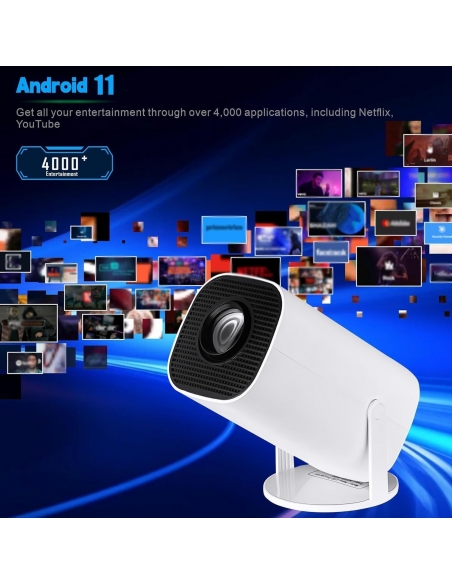 County LCD Projector Mini Proiettore Portatile WiFi+BT5 HD Android11, Proiettore Soffitto Correzione automatica Direzione Verticale, Dimensione di proiezione 40~150 In Regolazione Dell'angolo Multiplo di 180°