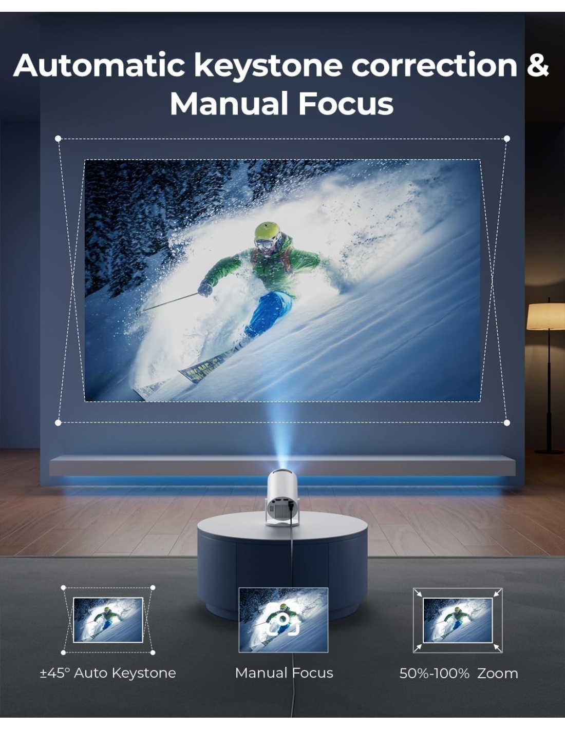 Einyoumily HY300Pro Mini Proiettore Portatile 4K Supporto con WiFi 6 Bluetooth 5.4 Auto Keystone Rotabile 180° per Phone/PS5/HDMI/TV Stick/USB/PC