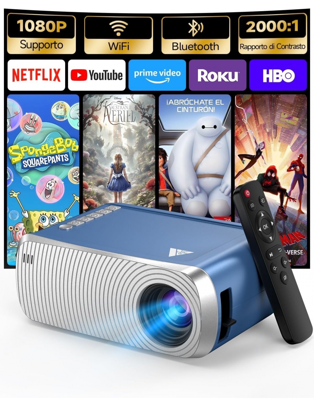 ANTMAP VF280 Mini Proiettore Portatile 4k, 1080P FHD WiFi e Bluetooth 5.4, Videoproiettore Home Cinema da Esterno con HDMI per Telefono/HDMI/USB/TV Stick