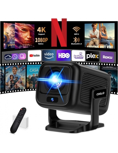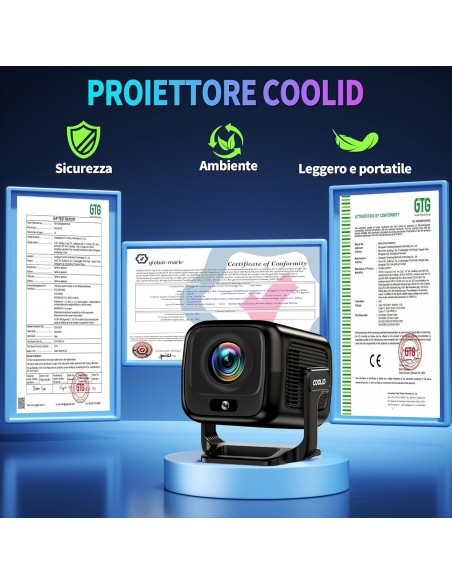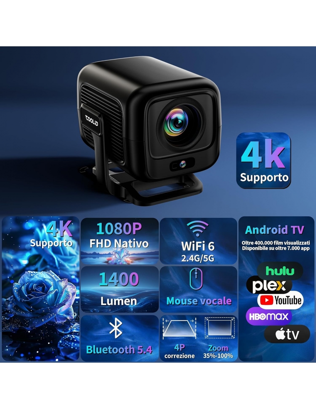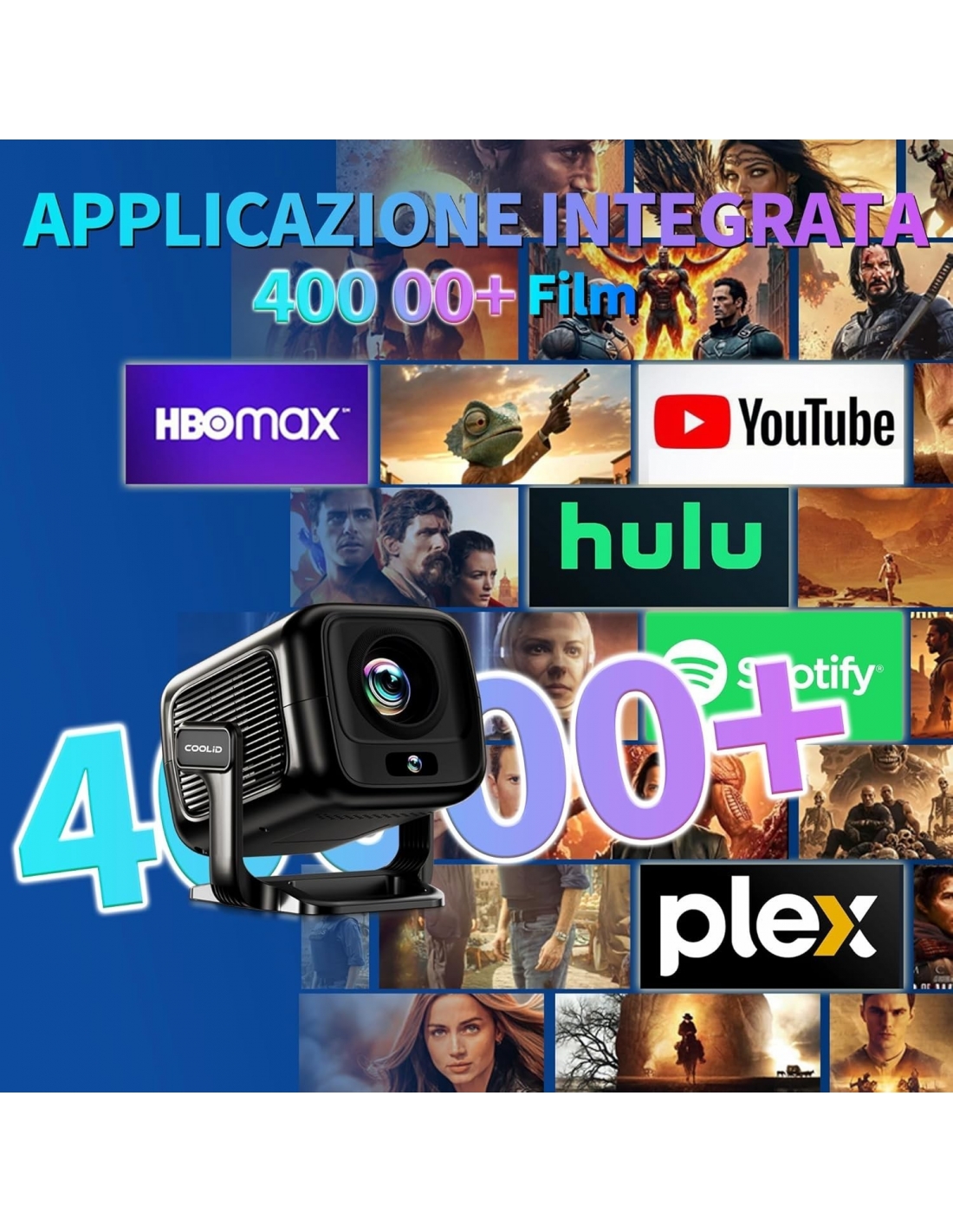 COOLID HY300Pro Proiettore Portatile 1080P HD, Mini Proiettore WiFi 6 Bluetooth 5.4 Videoproiettore Focus Elettronico Auto Keystone App Integrata, iOS/Android TV/Chiavetta TV/USB/Laptop