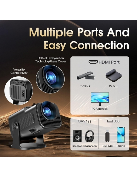 - 【Compatibile con 4K, 1080P e 720P】Il proiettore offre una qualità d'immagine straordinaria, fornendo ai clienti una qualità di proiezione realistica, dinamica e dai colori vividi. Permette di godere di un'esperienza di qualità cinematografica a casa. Il proiettore supporta la riproduzione video nei formati 4K, 1080P e 720P.