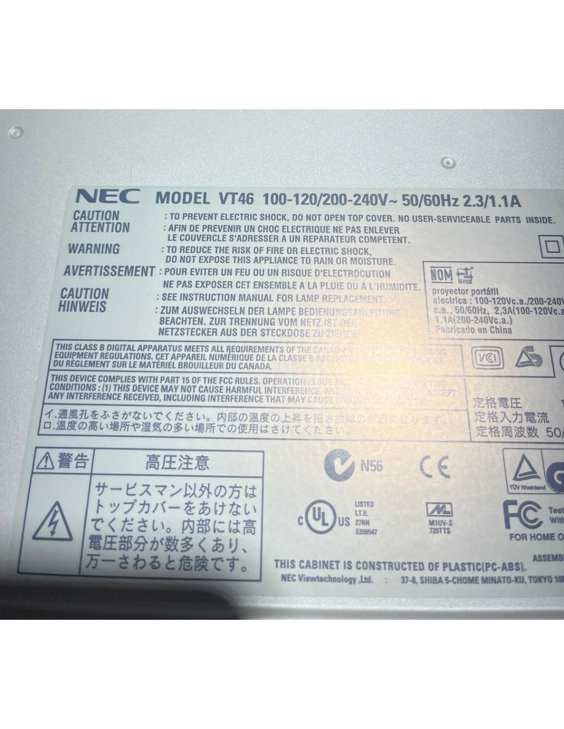 VIDEOPROIETTORE NEC VT46 NO TELECOMANDO