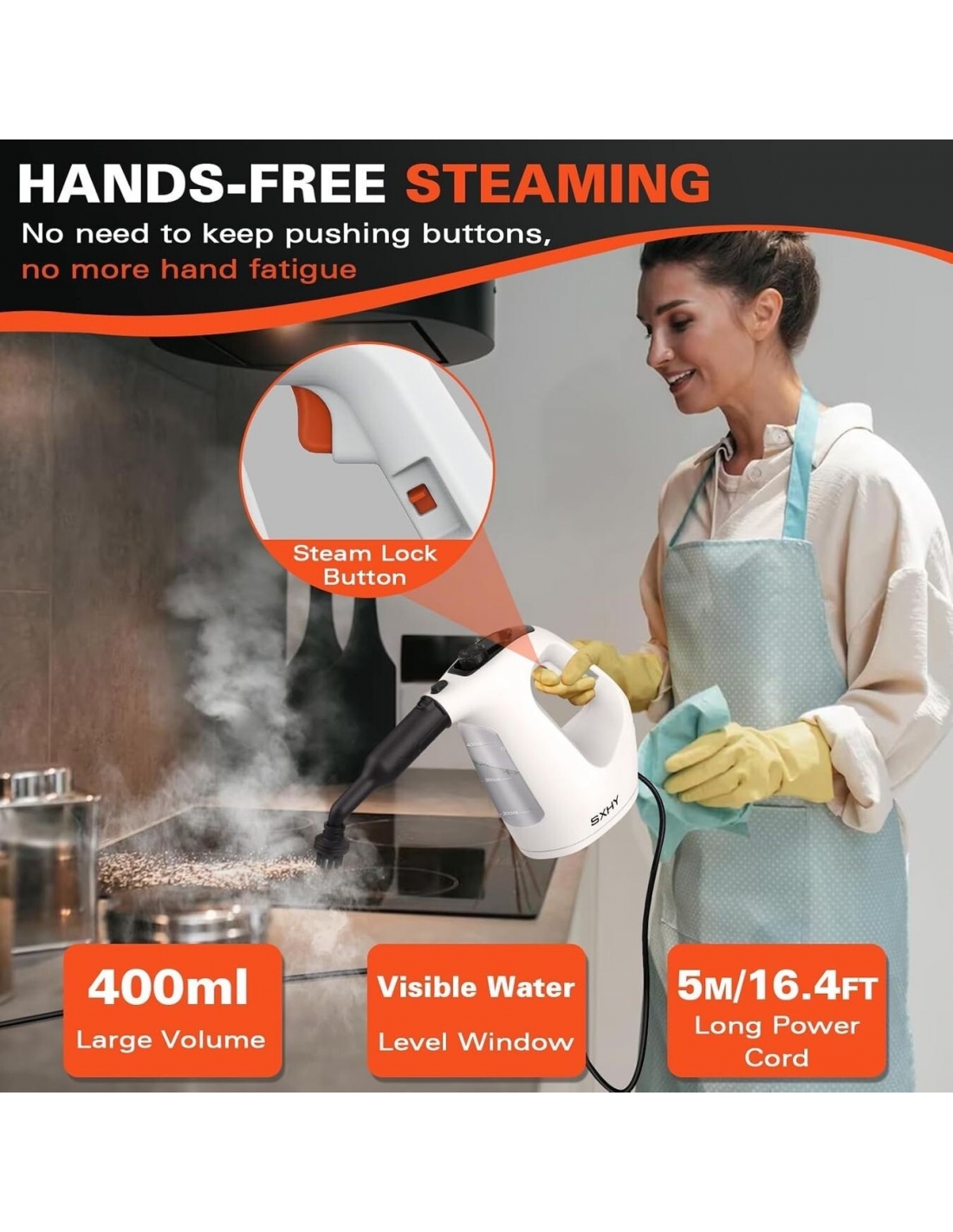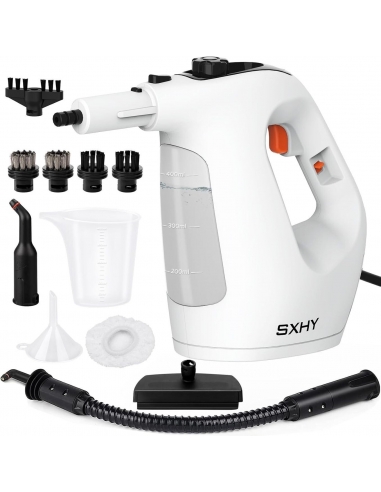 Il pulitore a vapore portatile SXHY svolge un lavoro straordinario di pulizia e stiratura. In più, un kit di accessori da 11 pezzi, tra cui: ugello angolato, tubo morbido, ugello con spazzola, vaporizzatore per tessuti, tergicristallo in gomma per finestre/porte e molti altri extra.
