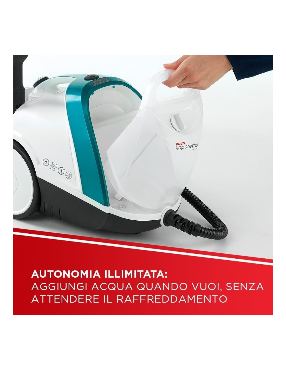 Polti Vaporetto Smart Pulitore a Vapore con Caldaia 4 Bar 1500 W Autonomia Illimitata Ricarica Continua Accessori Inclusi Bianco e Turchese