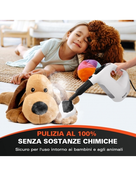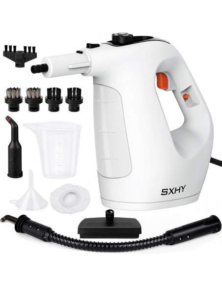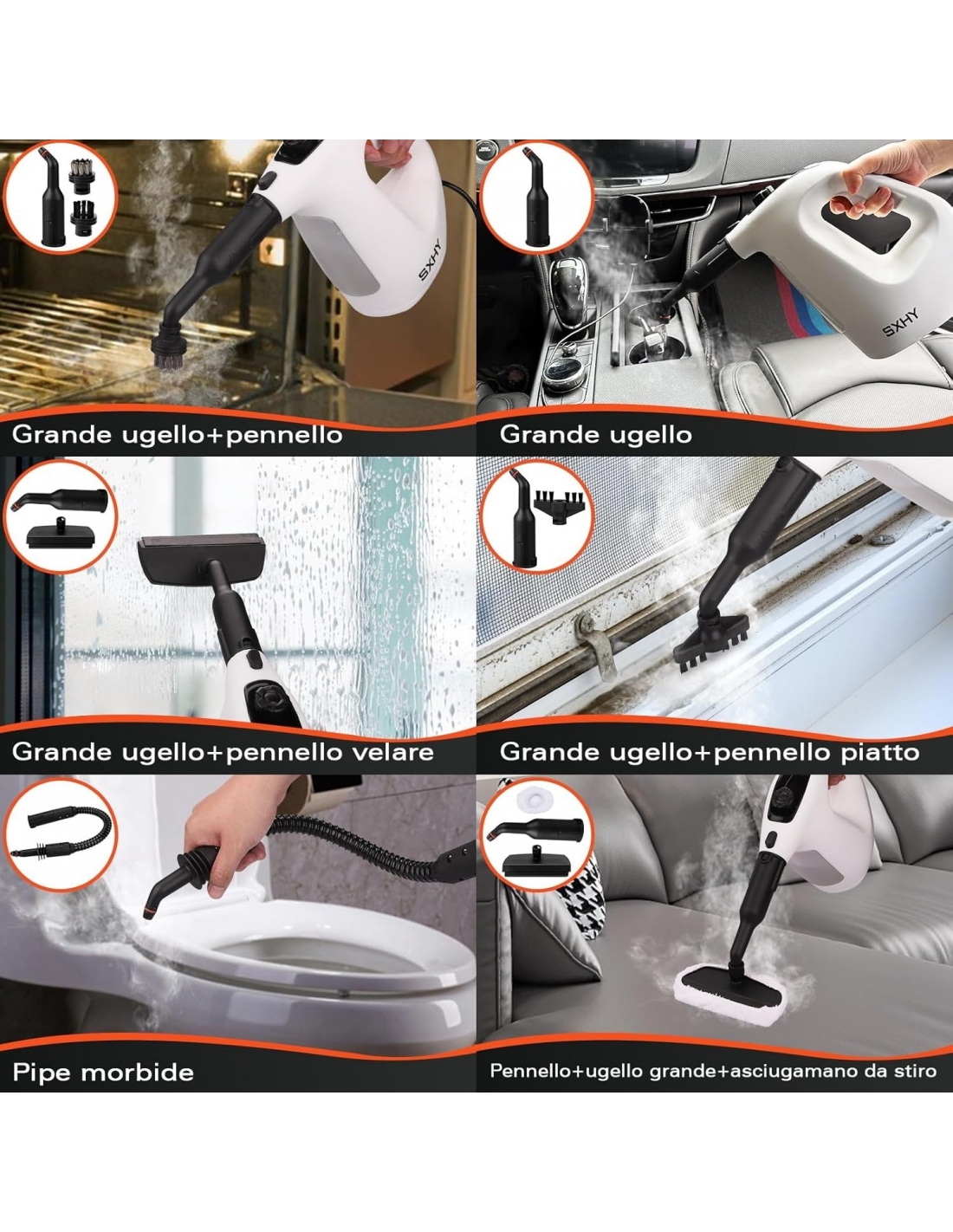 SXHY CB-09A Pulitore a vapore portatile multiuso per uso domestico con serbatoio trasparente – Set di 11 accessori per divani, bagni e altro