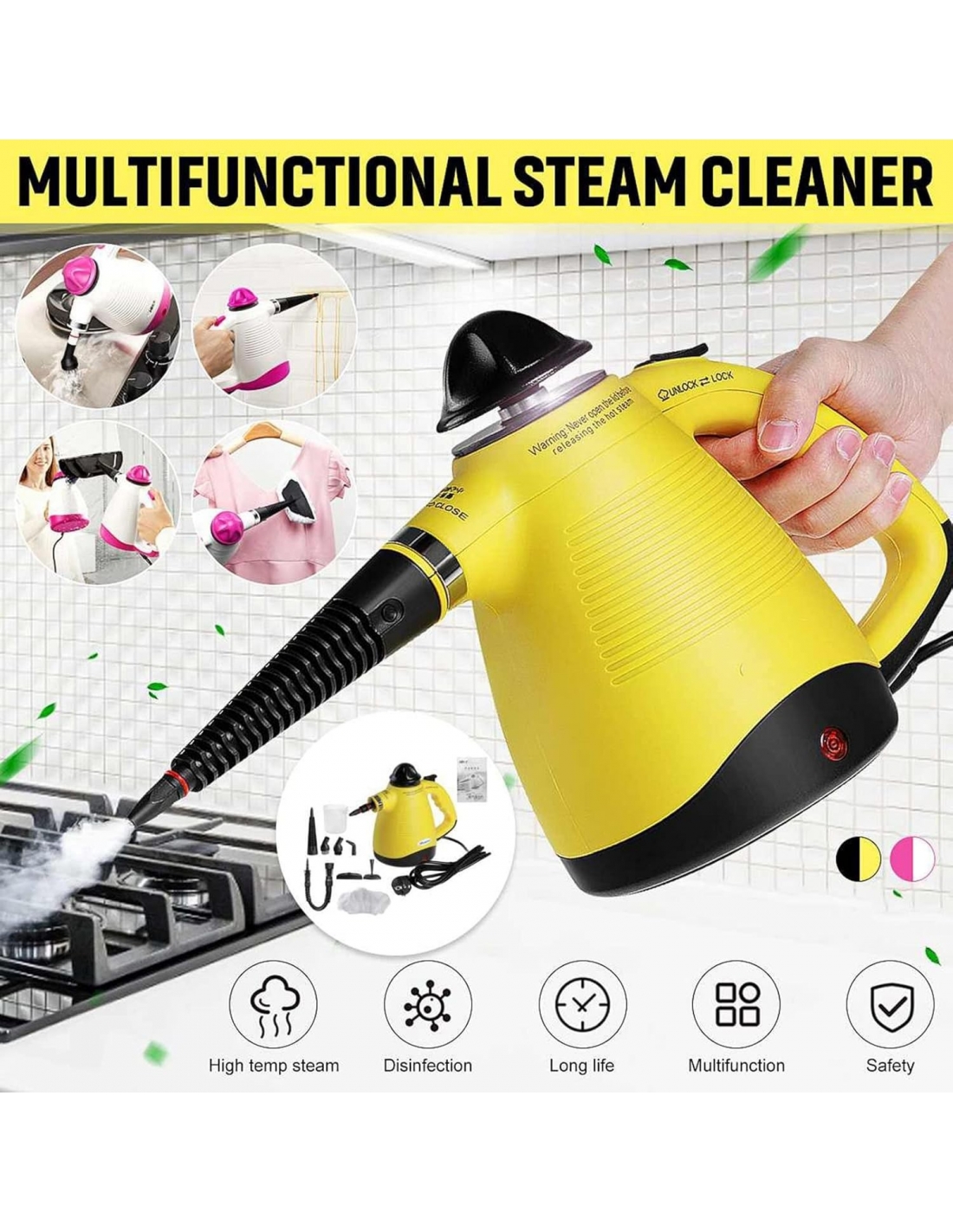 Boyuan Pulitore a Vapore Portatile, Pulizia a Vapore di Grande capacità da 450 ml, con Accessori da 9 Pezzi, Perfetto per la rimozione di Macchie, Tende, sedili dell'auto, Pavimento,Giallo