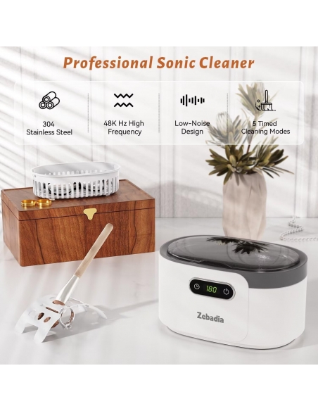 ZEBADIA 600ML Pulitore Lavatrice Ultrasuoni Gioielli 48KHz Orologi Occhiali Gioielli