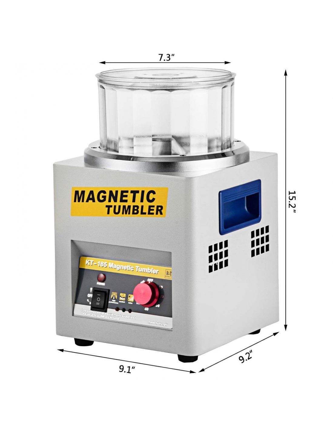 - Materiale Durevole e Affidabile: Il bicchiere per gioielli realizzato in resistente policarbonato, ha la funzione a prova di perdite e una lunga durata. Dimensioni rullo: 19,5 x 12 cm (7,72 x 4,72 pollici), capacità: 3 kg (6,6 libbre), velocità: 2000 giri / min, controllo del tempo: 2-30 minuti, perni di lucidatura: 200 g n. 5.
