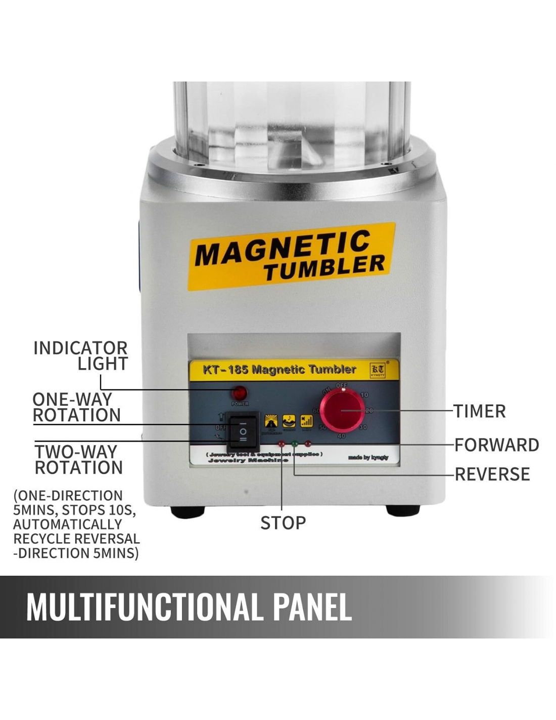 VEVOR Lucidatrice Magnetica Gioielli Kt-185 Rotativa180mm Professionale a Tamburo Rotante con Rotazione Bidirezionale 2000 RPM per Metallo Leggero