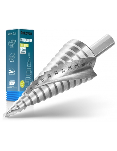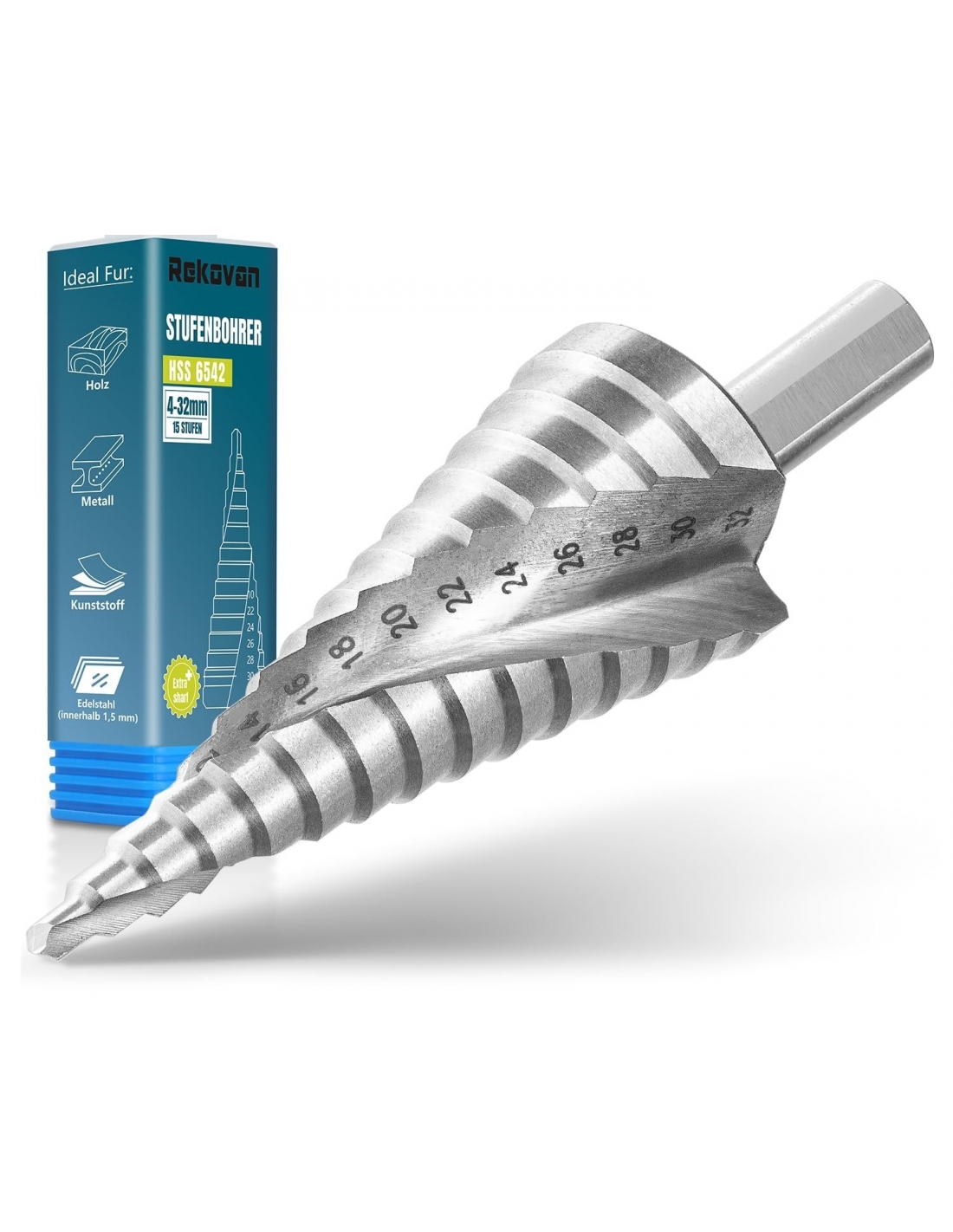 Rekovan Fresa Conica, 4-32mm, Alta Qualità HSS 6542 per metallo, acciaio, legno, ferro, plastica, Punte Coniche 15 livelli, Frese Coniche con gambo da 10 mm, Adatto a tutti i dispositivi