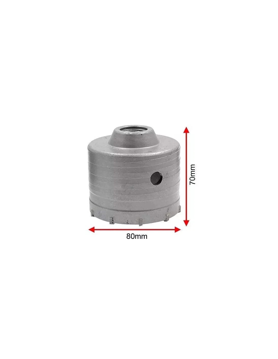 Fresa carotatrice a tazza 80 mm completa di prolunga da 9 cm con innesto sds-plus, tutto in acciaio.