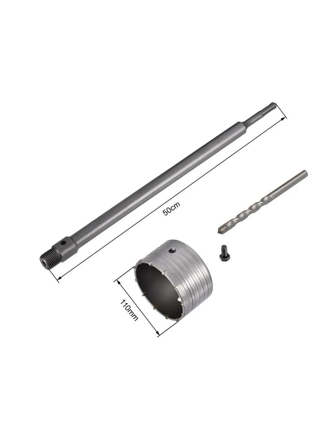 Asta completa di fresa carotatrice corona a tazza diametro 110 mm, tutto in acciaio con innesto SDS-PLUS.