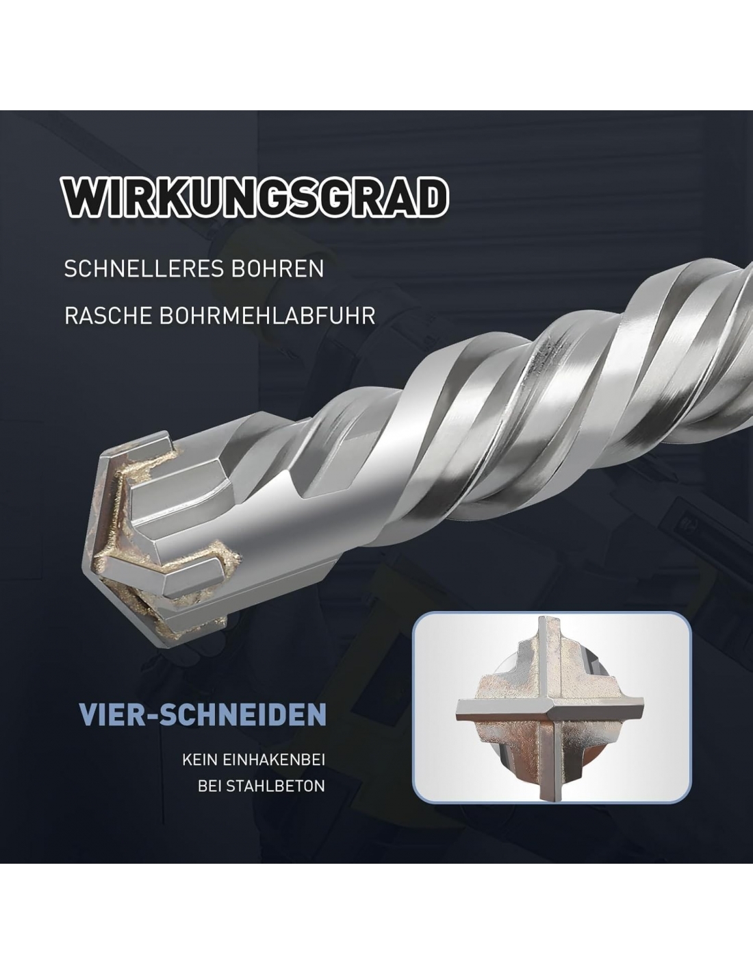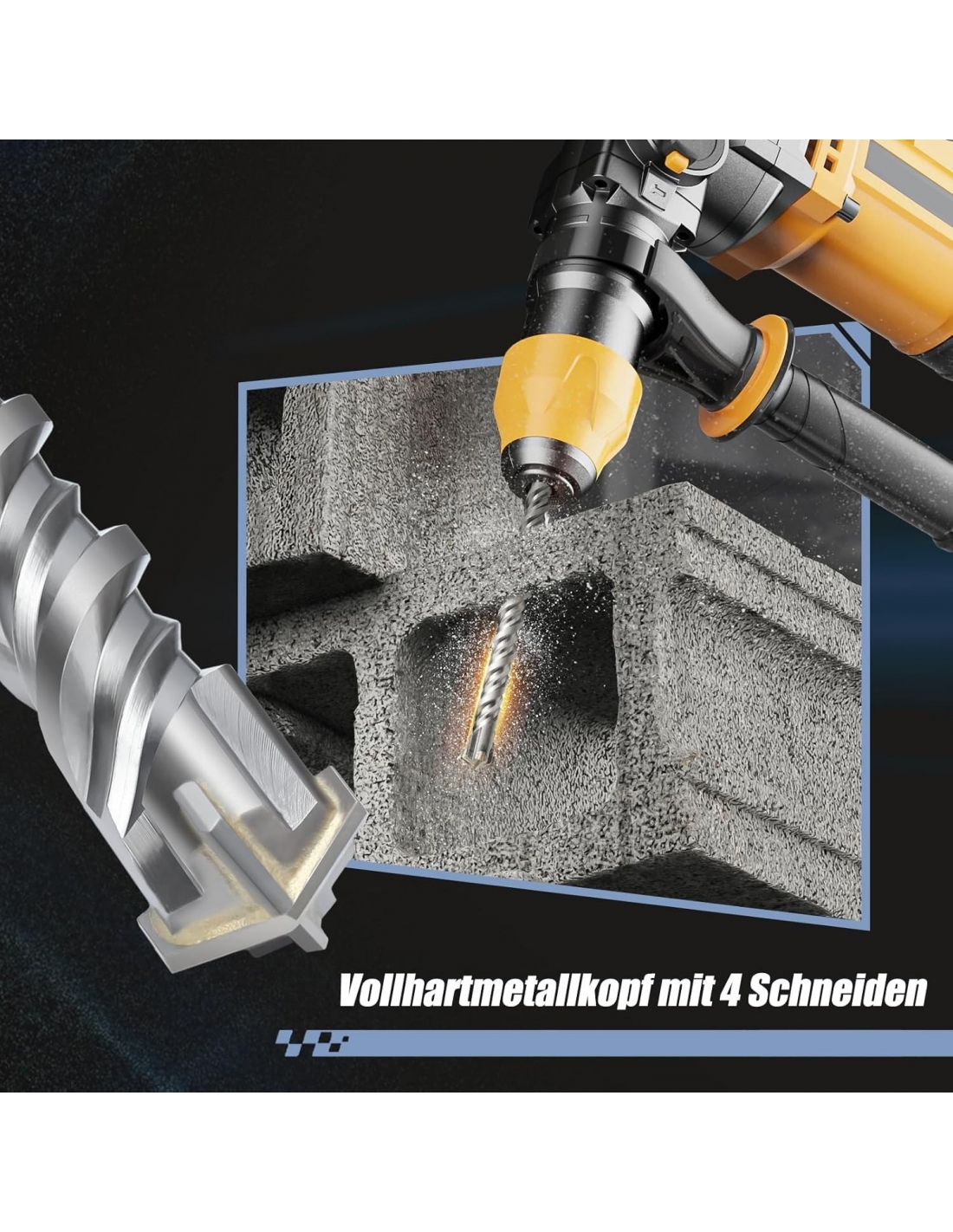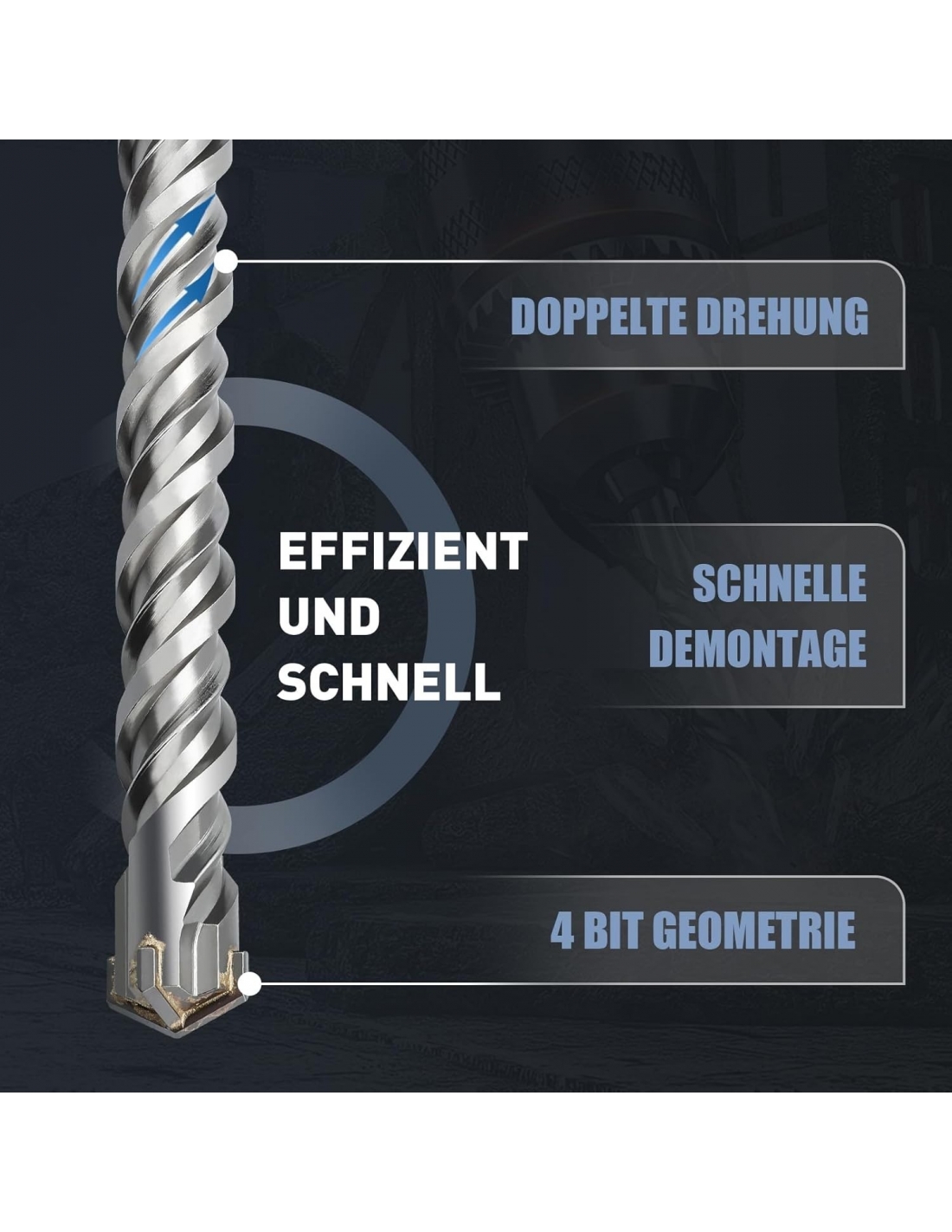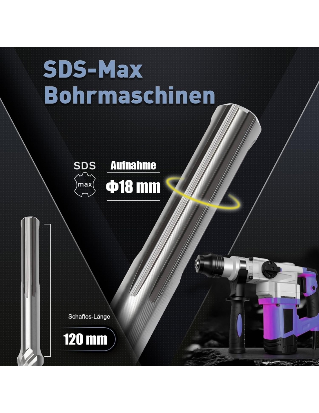 - La punta SDS Max ha una testa in metallo duro con 4 tagli, rapido avanzamento di foratura senza sbavature.