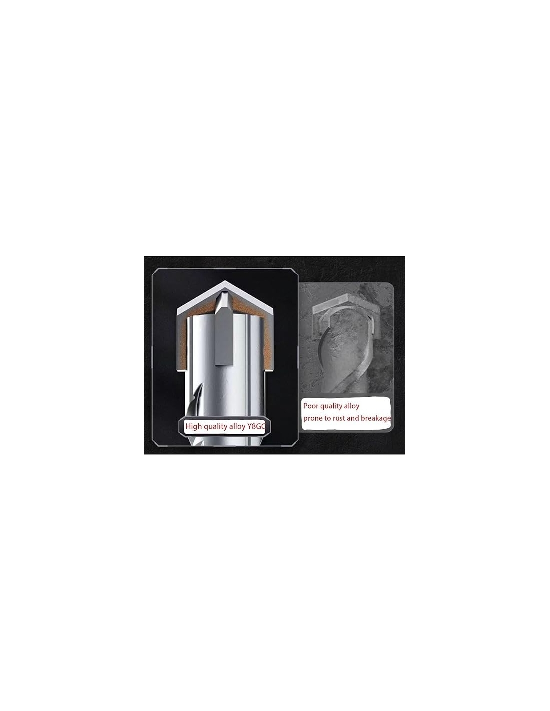 - Punte di qualità superiore: queste punte sono realizzate in carburo YG8C, brasato e temprato per garantire una foratura facile e veloce e una lunga durata.